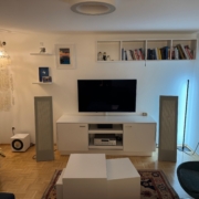 Vermeintlich relativ simpel war es diesmal im Großen Vorführstudio des FLSV in Bamberg. Denn hier waren nur zwei Anlagen, jeweils für sich schlüssig und unabhängig voneinander, zu installieren. Aber das ist ja immer leichter gesagt, als richtig bedacht. Denn wie kann man diese stellen, ohne dass sie sich gegenseitig beeinflussen oder gar im Weg stehen. Zur Erinnerung: In diesem Studio tummeln sich geschätzt mehr Lautsprecher als bei den nächsten drei Kollegen zusammen und das bei deutlich geringerem Platz.