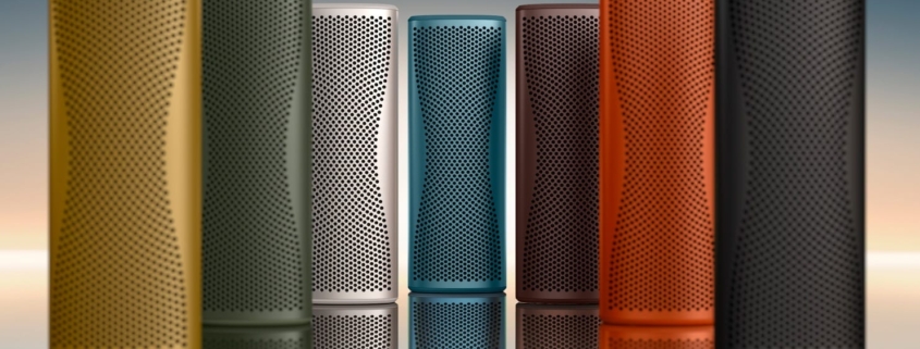 Midnight Black, Silver Dusk, Moss Green, Blue Aura, Cacoa Brown, Amber Haze und Orange Moon, das sind die neuen Farben des ebenfalls neu aufgelegten, Stromnetz-unabhängigen Bluetooth Lautsprechers von KEF, der aber genauso heißt wie sein Vorgänger, nämlich Muo. Und möchte man nicht gleich jede der Farben sein Eigen nennen? Nein? Dann aber wenigstens zwei? Denn man kann wie früher zwei der Muos als Stereo-Set konfigurieren.