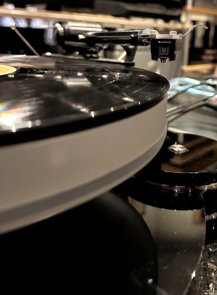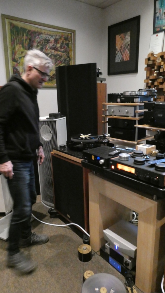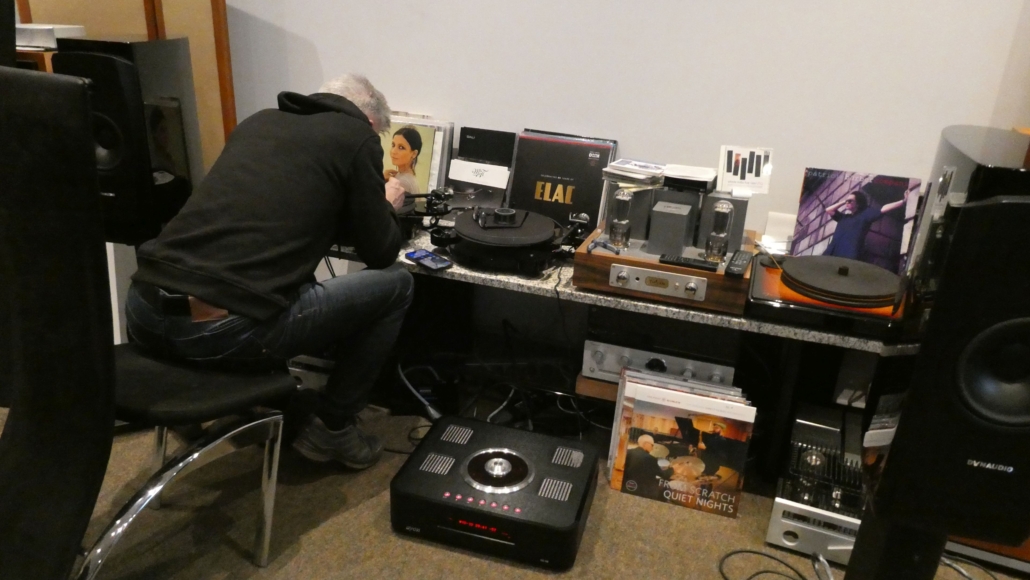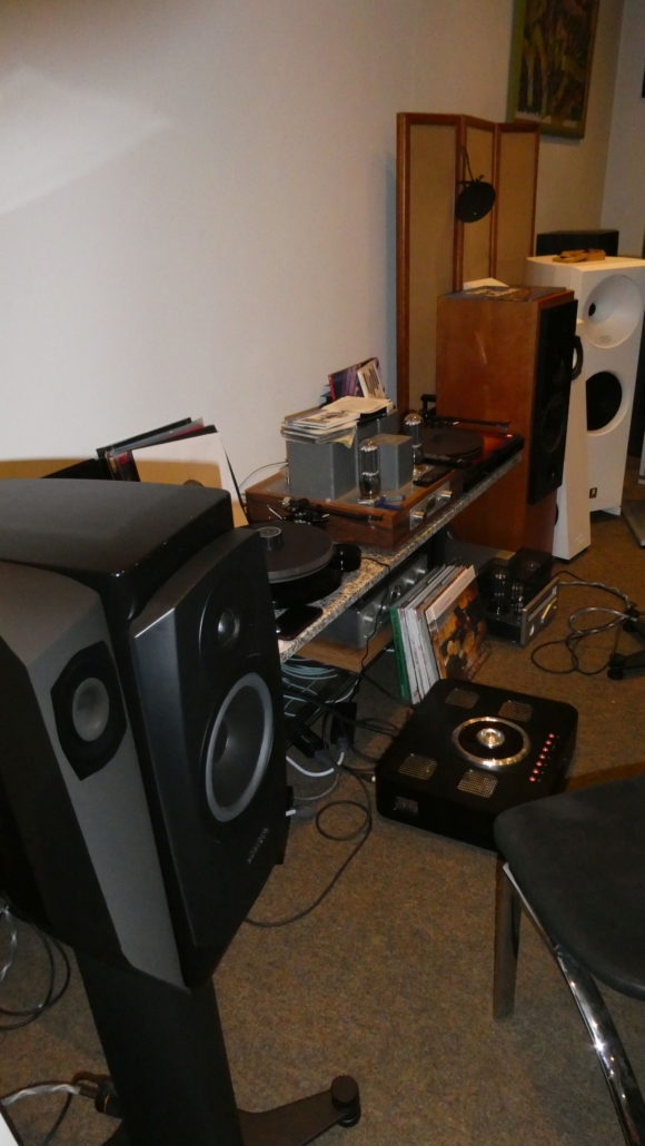 Es wird im Großen Vorführstudio zwei Vorführebenen geben. Die erste wird die Längsseite des Großen Vorführstudios sein, wo auch die richtig großen Laufwerke mit den richtig sauguten Tonarmen und den noch besseren Tonabnehmern direkt gegeneinander antreten. Hier wird der Systemvergleich MC-Tonabnehmersystem gegen Photo-optische Abtastung stattfinden.